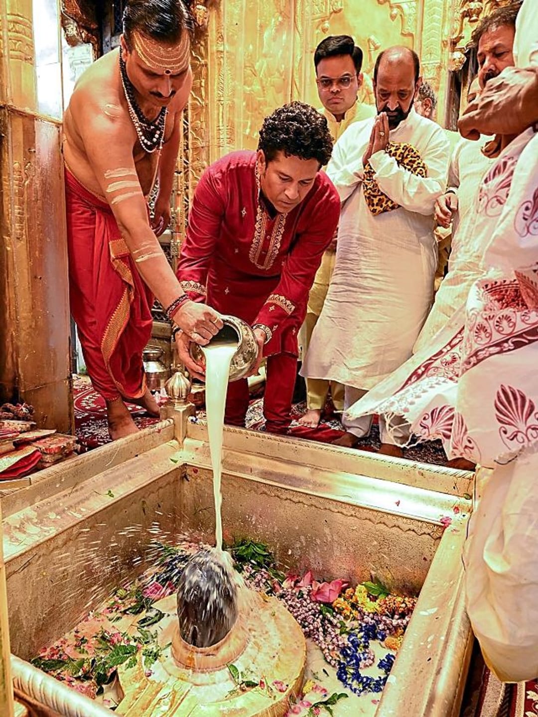আজ বারাণসীতে নতুন আন্তর্জাতিক ক্রিকেট স্টেডিয়ামের শিলান্যাস অনুষ্ঠানে প্রধানমন্ত্রী নরেন্দ্র মোদীর হাতে 'নমো' লেখা ভারতের জার্সি তুলে দিয়েছেন সচিন।