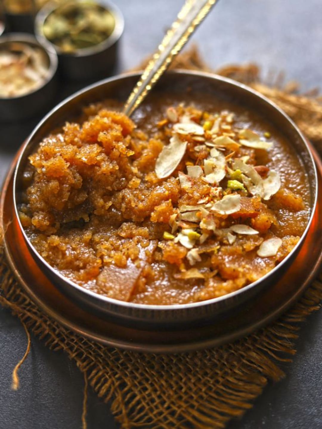 মুগ ডালের হালওয়া:মুগ ডালের পেস্ট, ঘি, চিনি ও কিছু ড্রাই ফ্রুটস দিয়ে বানিয়ে নিতে পারবেন এমন সুস্বাদু ভারতীয় মিষ্টি।