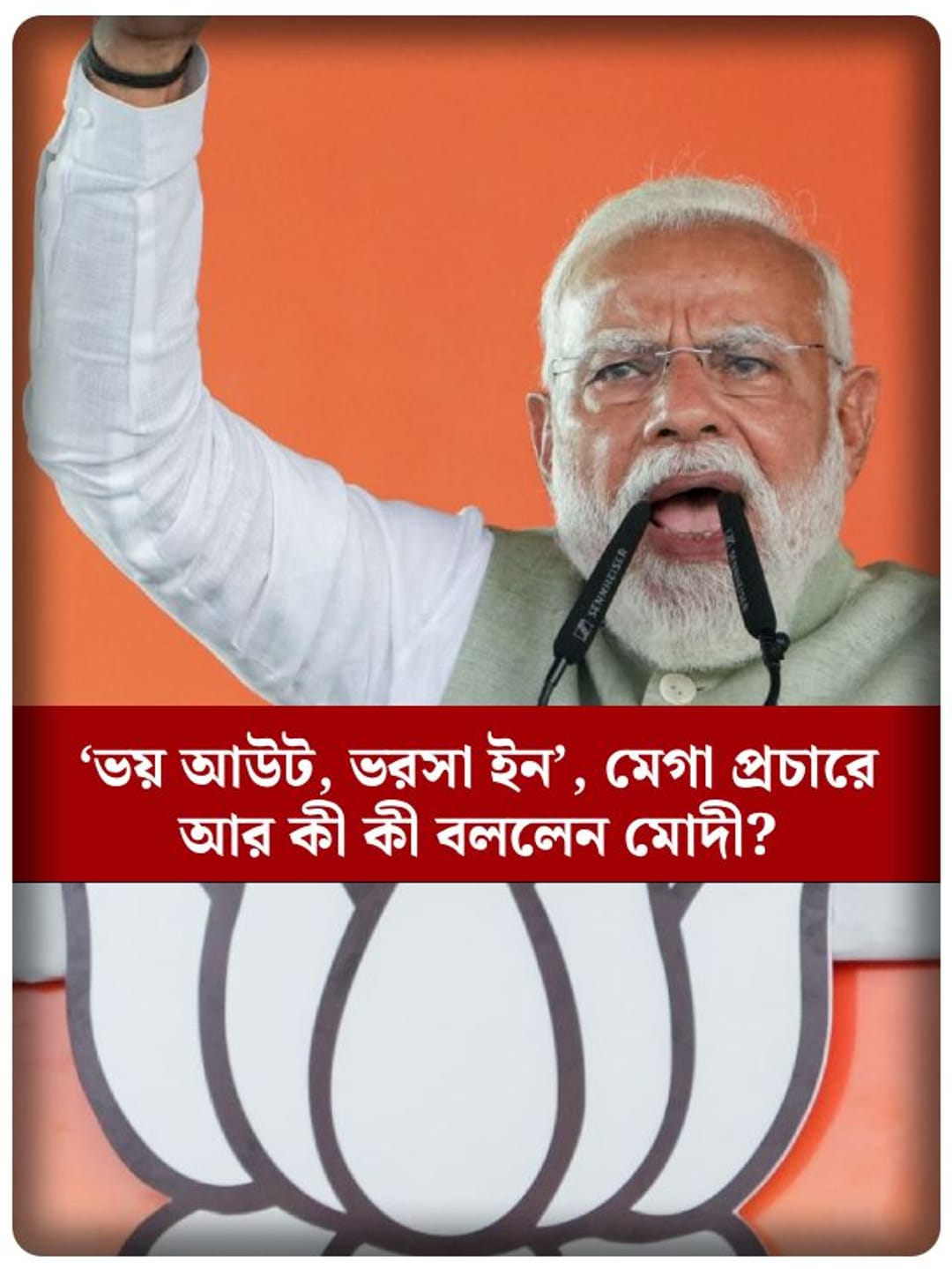 ‘ভয় আউট, ভরসা ইন, বিজেপিকে ভোট দিন’, মোদীর মুখে শোনা গেল নতুন স্লোগান।