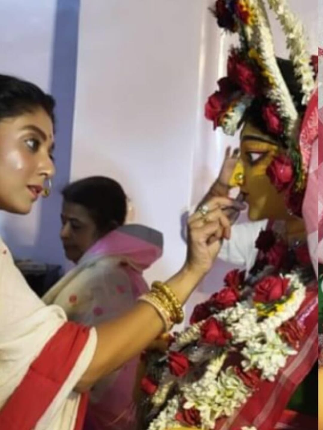 নিজে হাতে প্রতিমা সাজান থেকে শুরু করে প্রতিটা পদে পদে পুজোর সমস্ত আয়োজন নিজে হাতে করে থাকেন অভিনেত্রী। সারাদিন ব্যস্ততা থাকে তুঙ্গে।