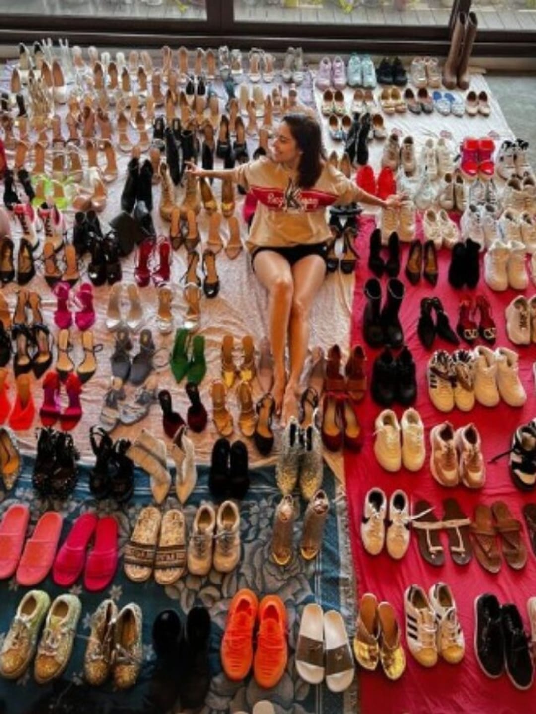 নিজেই সেই কালেকশনের মাঝে বসে ছবি পোস্ট করলেন তিনি। নিজেই লিখলেন জুতোর ফ্যাক্টারি।