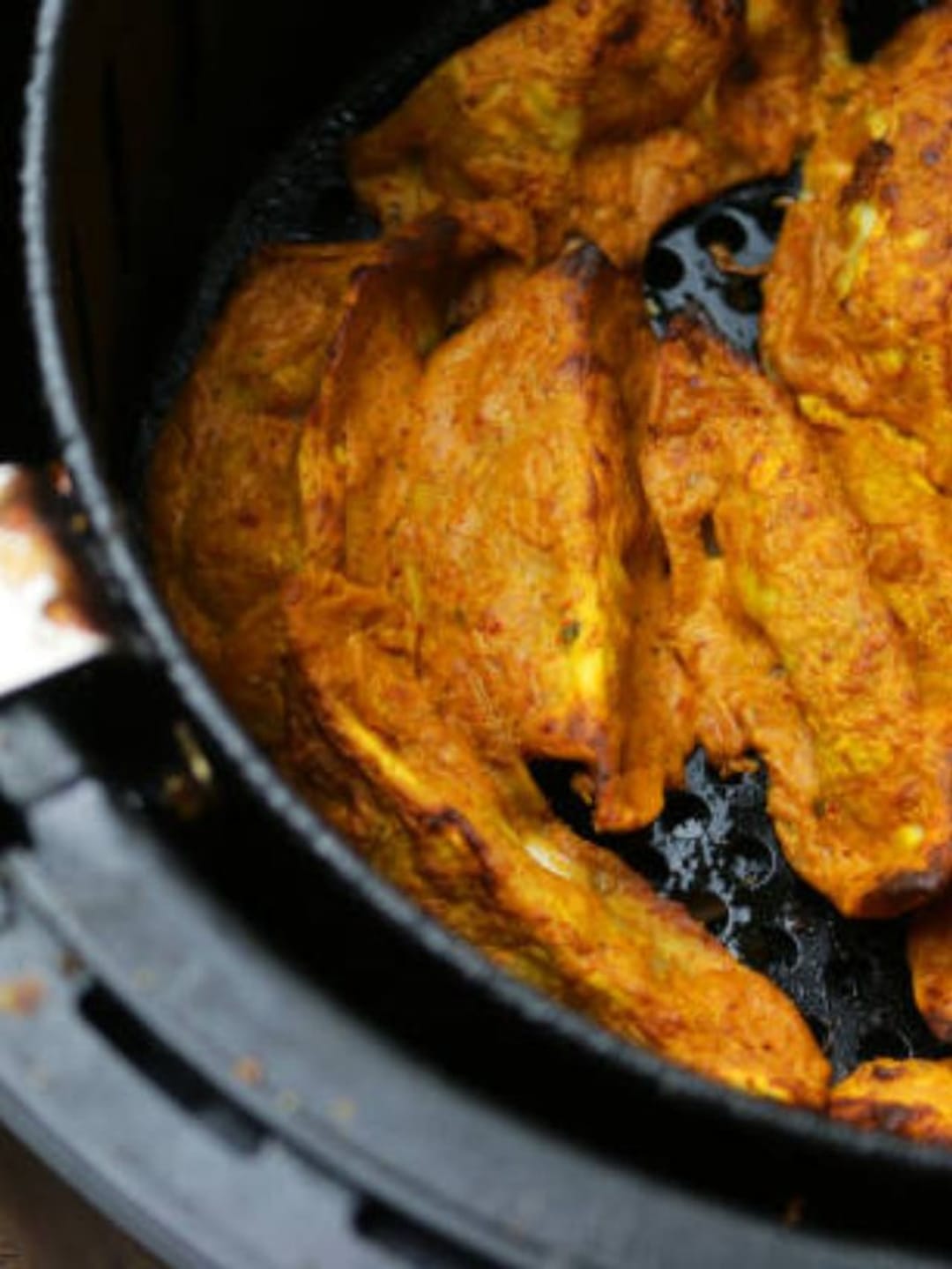 একটা চেরা কাঁচালঙ্কা উপর থেকে দিয়ে পাউডের মুখ বন্ধ করে দিন। এই ভাবে চিকেন মুড়ে ১ ঘন্টা ফ্রিজে রেখে দিতে হবে। এবার এয়ার ফ্রায়ের বাস্কেটে চিকেনের টুকরো গুলো বসিয়ে ৩৭০ ডিগ্রি ফারেনহাইটে ৩০ মিনিটের জন্য রান্না করে নিতে হবে