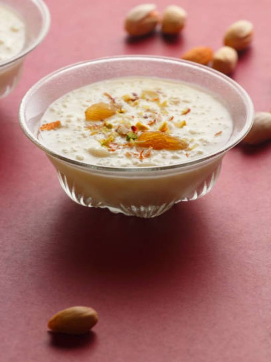 এ বার বাকি ১ টেবিল চামচ ঘি দিয়ে চিঁড়ে ভেজে নিতে হবে। তার পর ফুটন্ত জ্বাল দেওয়া দুধে প্রথমে বাদাম ও কিসমিস এবং পরে ভাজা চিঁড়ে ঢেলে নাড়তে হবে। এবার চিনি খোয়াক্ষীর আর সামান্য নুন মিশিয়ে নিন