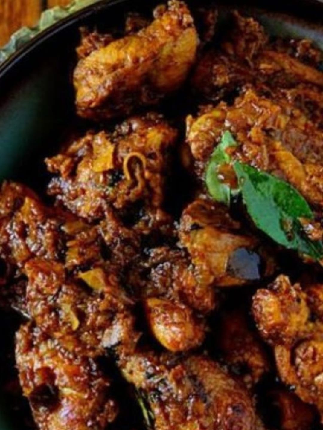মুরগির মাংস ভাল করে ধুয়ে জল ঝরিয়ে নিন। ফ্রাইং প্যানে তেল গরম করে শুকনো লঙ্কা, কাঁচা লঙ্কা কুচি, কারি পাতা এবং পেঁয়াজ কুচি দিন