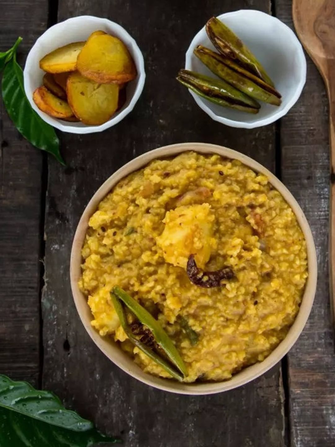 ডাল ঠান্ডা হয়ে এলে চিঁড়ের সঙ্গে নুন এবং চিনি মেশান। এবার পেঁয়াজ ঝিরি ঝিরি করে কেটে নিন। আদা মিহি এবং লম্বা লম্বা করে কুচিয়ে নিন।