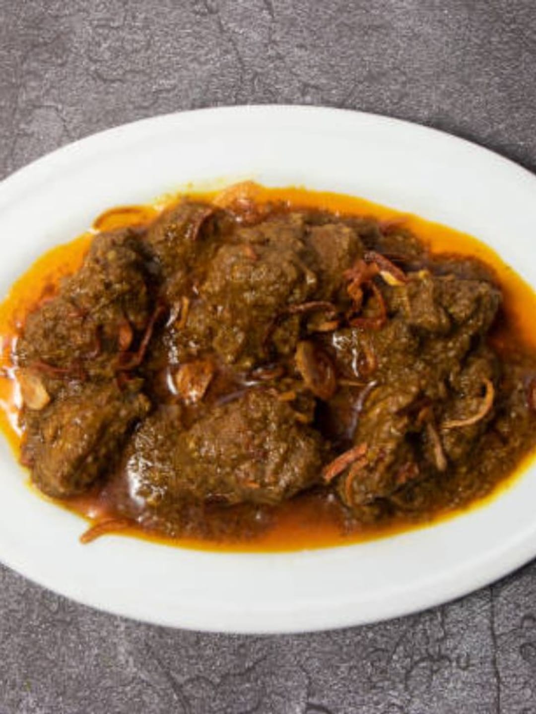 ১ ঘন্টা ঢাকা দিয়ে সেদ্ধ করে নিন। প্যানে ৪ চামচ তেল দিয়ে এক চামচ চিনি, এক কাপ কুচনো পেঁয়াজ, শুকনো লঙ্কা, গুঁড়ো করে রাখা মশলা কষিয়ে সেদ্ধ করে রাখা মাংস দিন। বেশ সেদ্ধ হলে ভেজে রাখা আলু, স্বাদমতো নুন দিয়ে কষিয়ে রান্না করুন