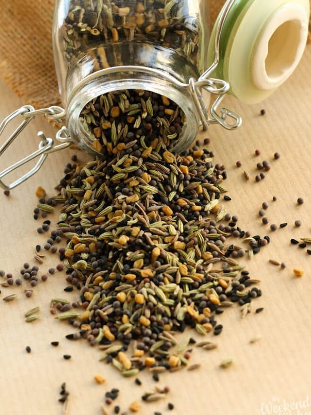 মেথি, সর্ষে, জিরা, কালোজিরা, মৌরি- সব মিলিয়েই এক অভিনব স্বাদ এই মশলার।
