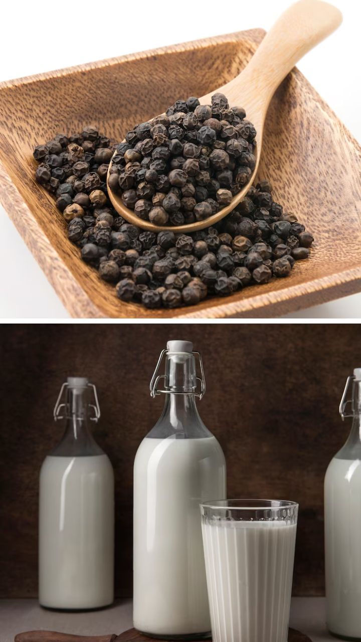 দুধে ক্যালসিয়াম ও ভিটামিন ডি রয়েছে। এছাড়া, কালো মরিচ মেশালে দুধে থাকা পুষ্টিগুণ আরও বেড়ে যায়। ডঃ গুপ্তা বলেছেন, কালো মরিচে অ্যান্টি-ভাইরাল ও অ্যান্টি-ব্যাক্টেরিয়াল বৈশিষ্ট্য রয়েছে।