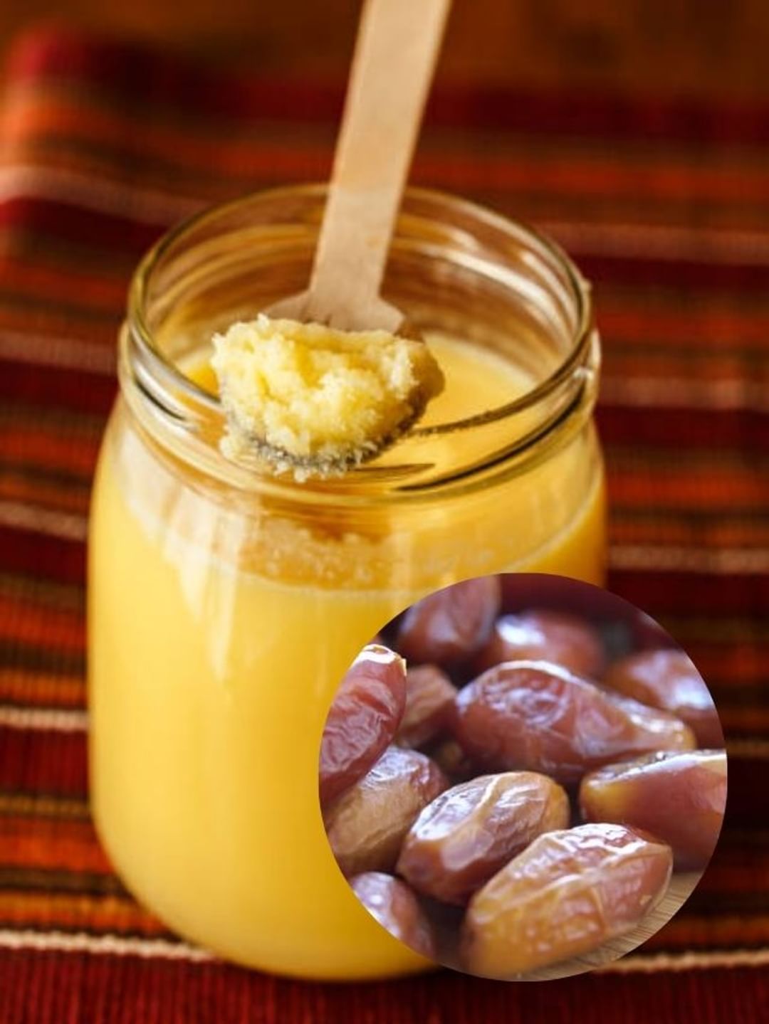 খেজুর ও ঘি একসঙ্গে দেহে এনার্জি বুস্টারের কাজ করে। খেজুরের মধ্যে প্রাকৃতিক শর্করা এবং ঘিয়ে স্বাস্থ্যকর ফ্যাট রয়েছে।