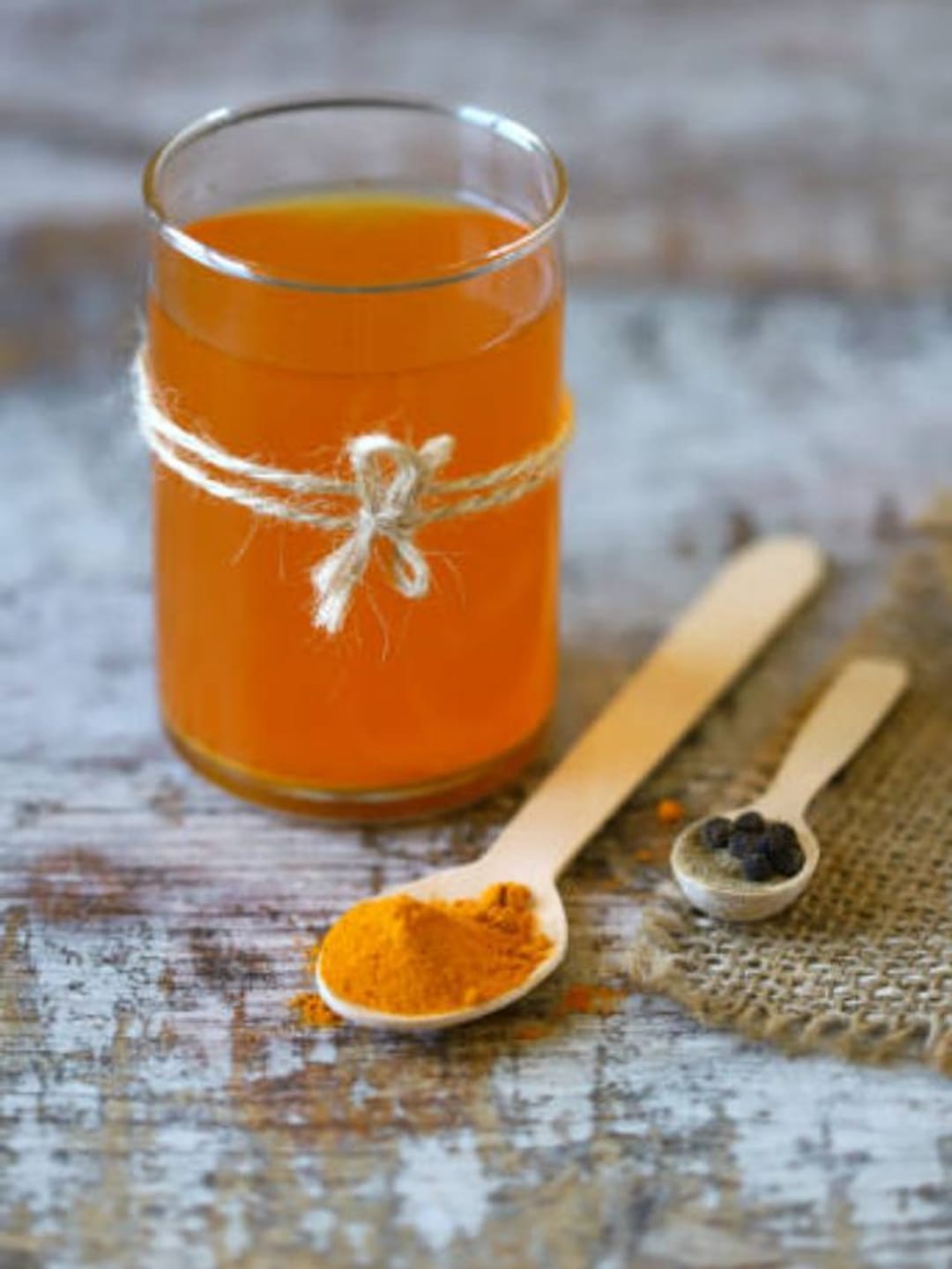 ১ কাপ উষ্ণ জল নিন। এতে ১/৪ চামচ হলুদ গুঁড়ো এবং ১/২ চামচ লেবুর রস মিশিয়ে দিন। এই পানীয় দিনের যে কোনও সময় খেতে পারেন।