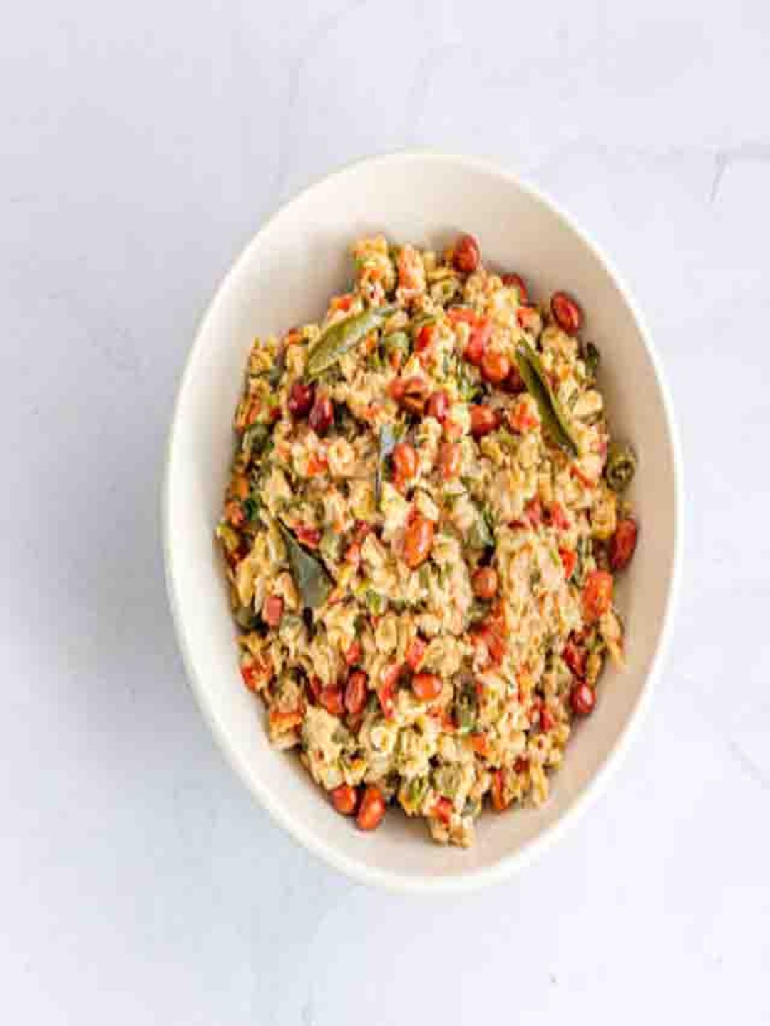 শুকনো লঙ্কা আর কারিপাতা দিন। এবার এটা ওটসের মিশ্রণের উপর ঢেলে দিন।