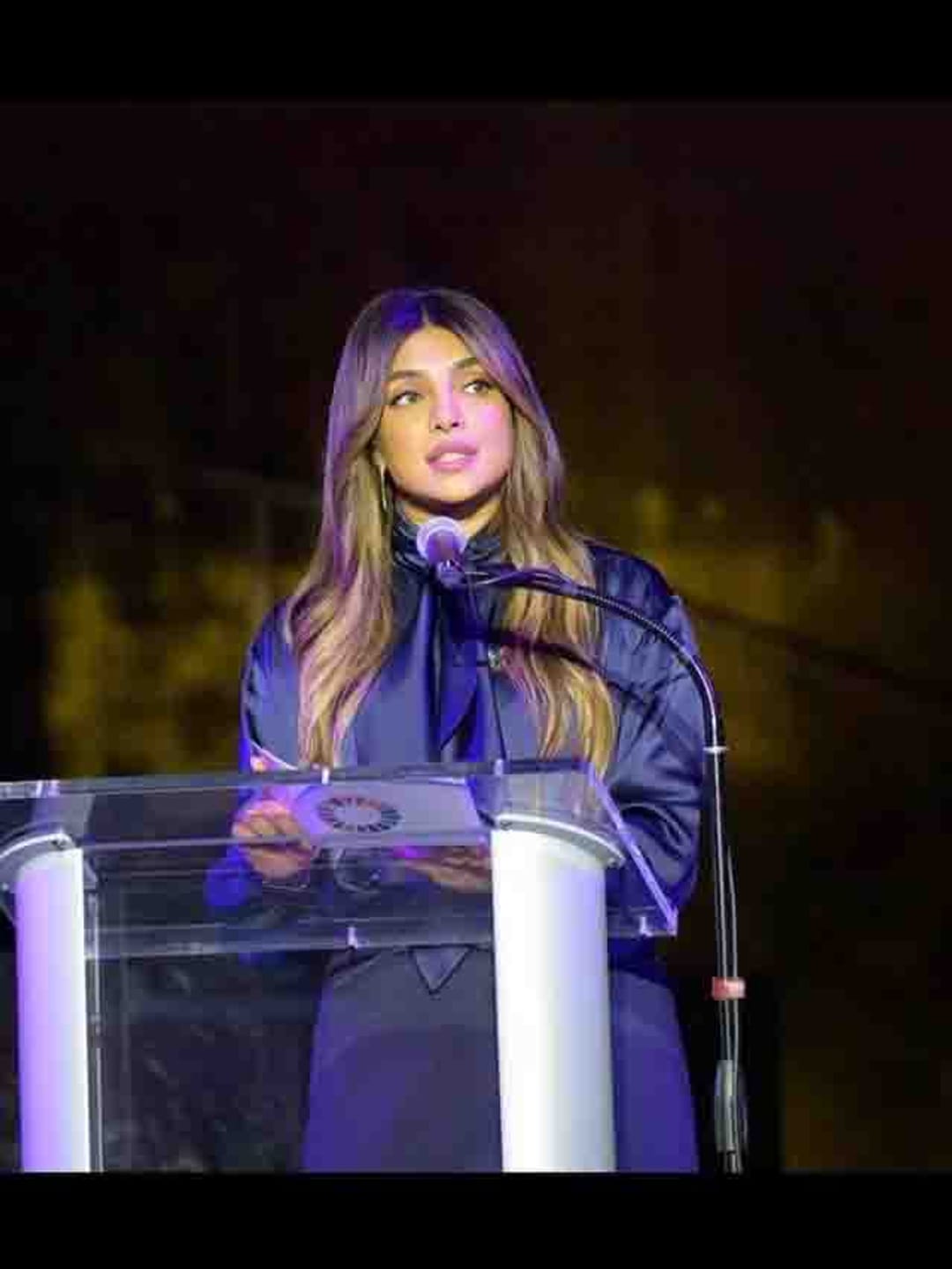 মঞ্চে দাঁড়িয়ে বক্তৃতা দিয়েছেন প্রিয়াঙ্কা...