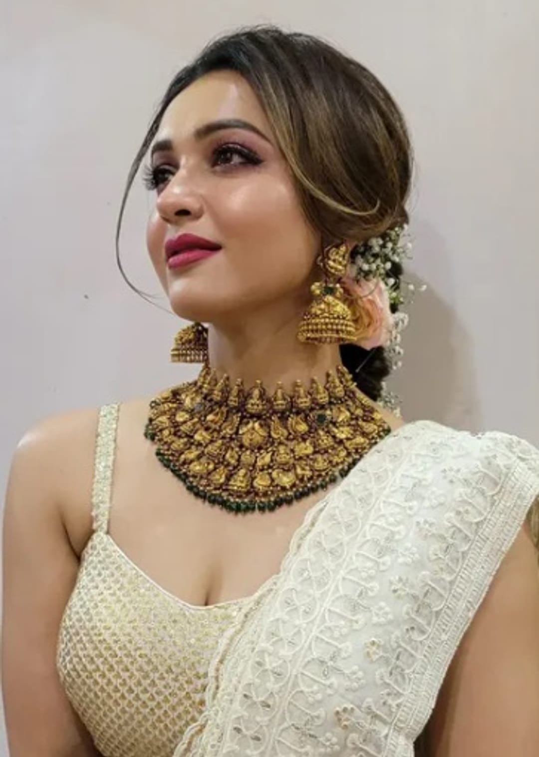 অফ হোয়াইট শাড়িতে সেজেছিলেন কৌশানী