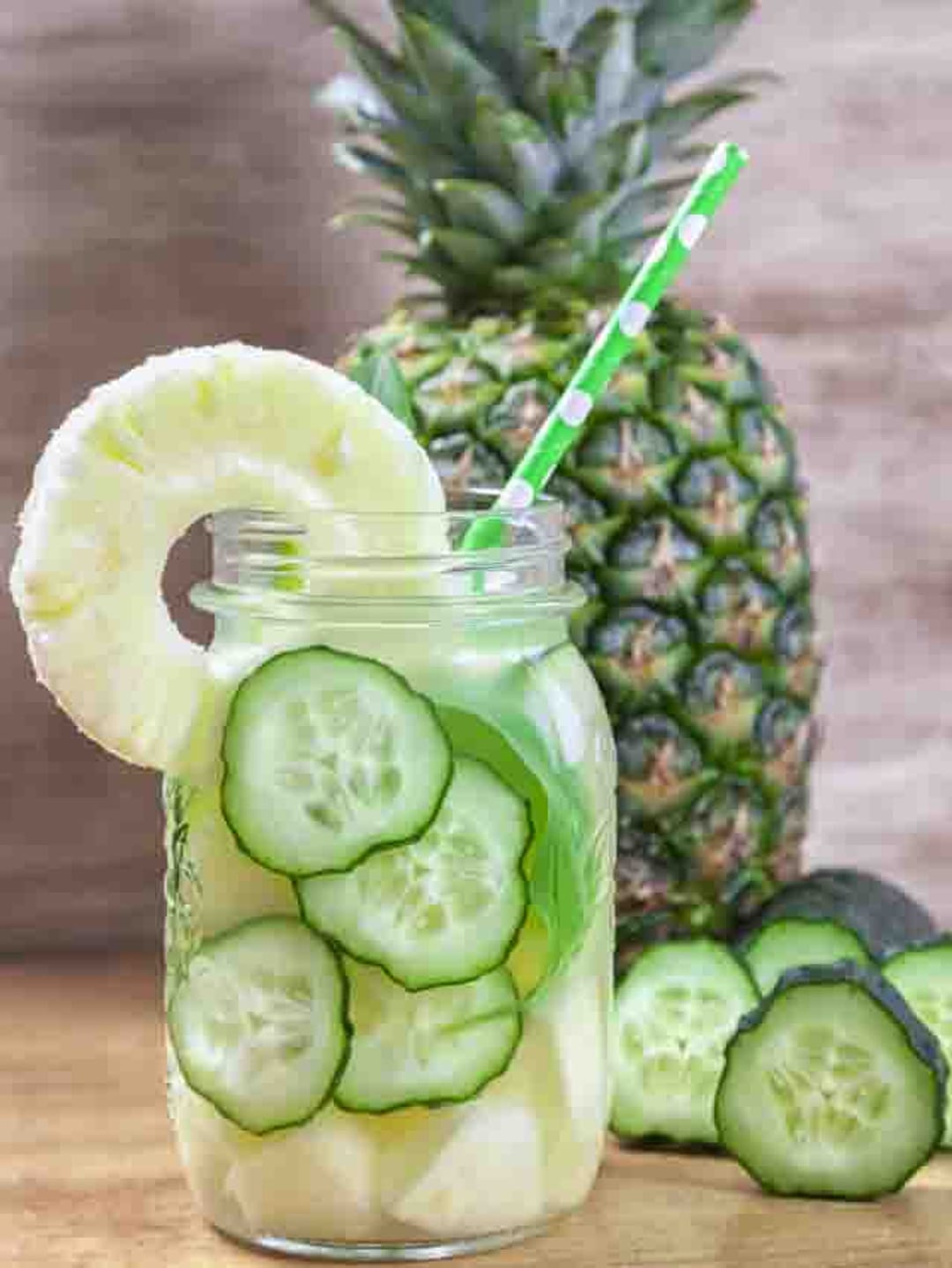 আনারস ও শসা একসঙ্গে ব্লেন্ডারে দিয়ে জুস বানিয়ে নিন। স্বাদের জন্য যোগ করুন পুদিনা পাতা।