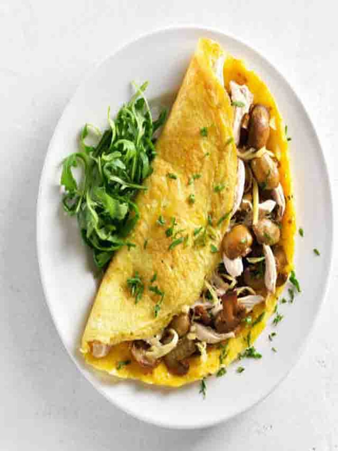 ডিমটা একটু সেট হলে এর উপর ভেজে রাখা মাশরুমটা দিয়ে দিন।