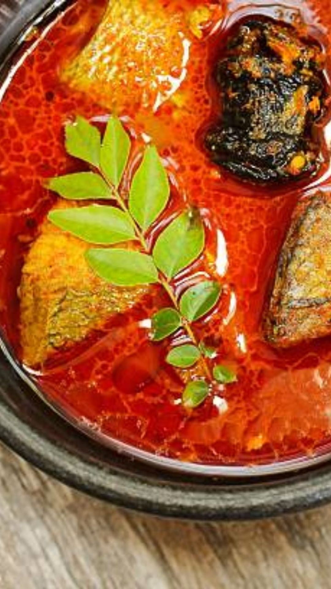 কমলালেবুর কোয়া ও কারি পাতা ছড়িয়ে পরিবেশন করুন মাছের ঝাল।