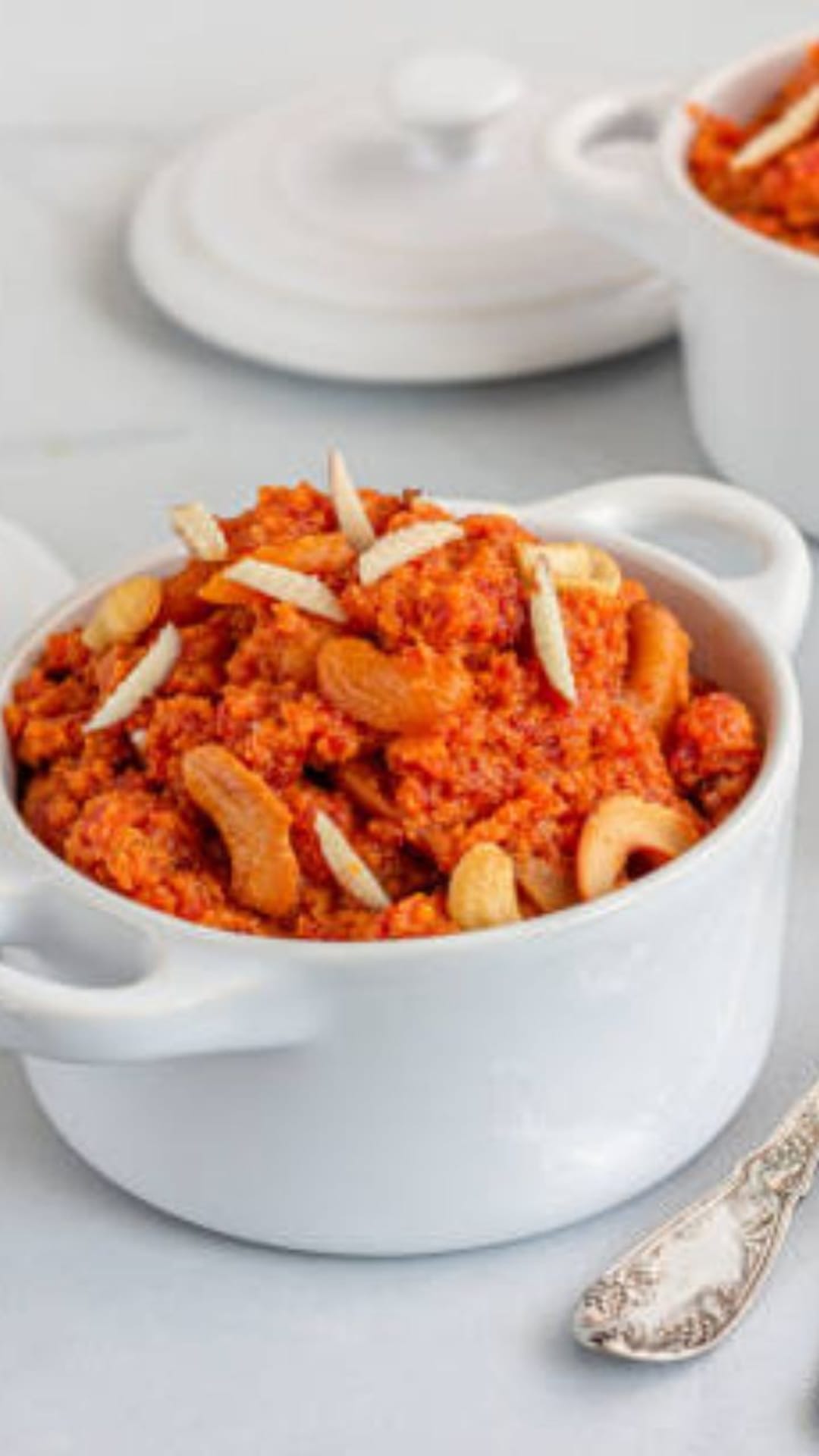 ঘন হয়ে এলে কাজু ও পেস্তাকুচি ছড়িয়ে নামিয়ে নিন গাজরের হালুয়া।