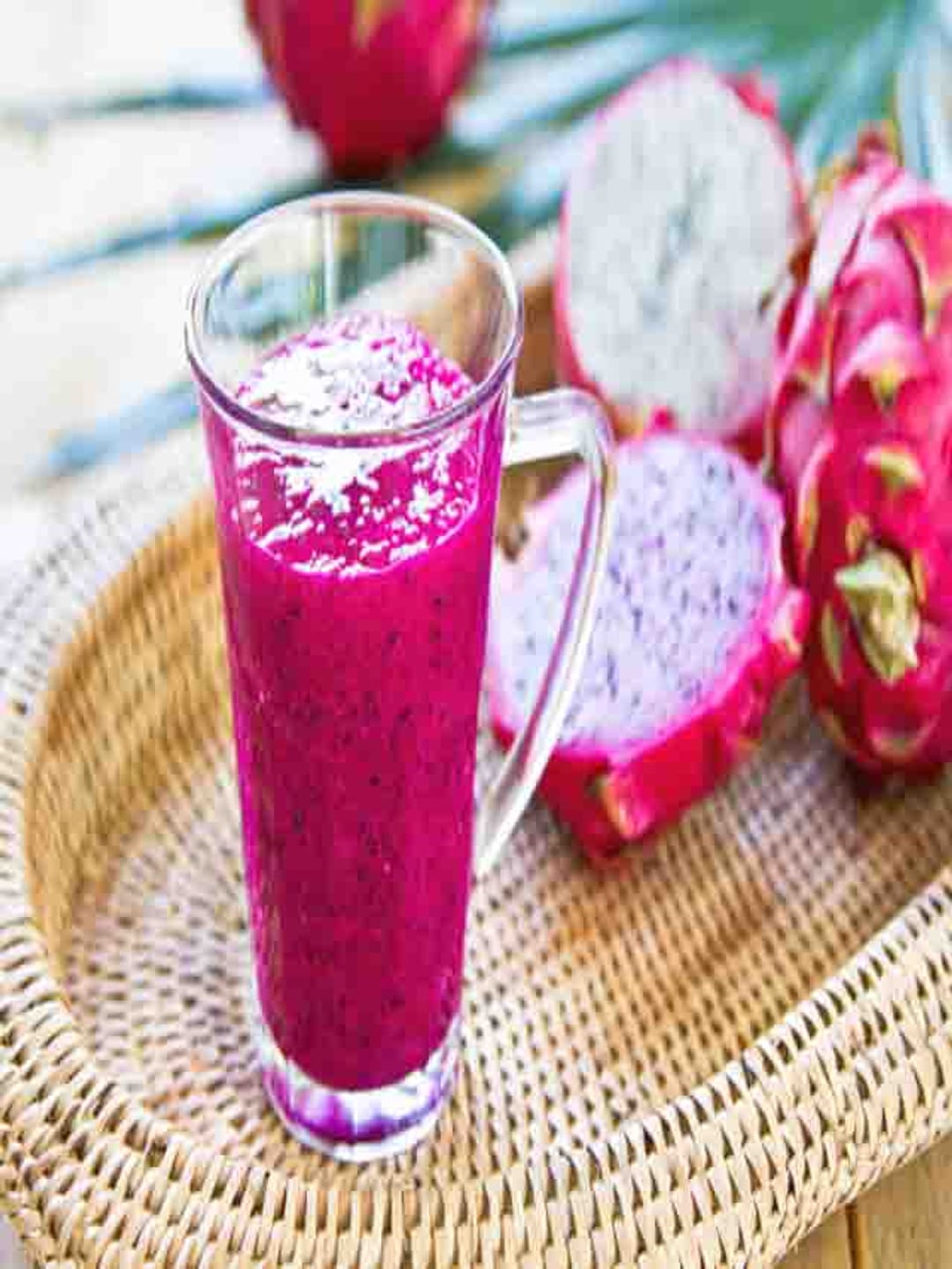 উপাদানগুলো একসঙ্গে ব্লেন্ড করে নিলেই তৈরি আপনার ড্রাগন ফ্রুটের স্মুদি।