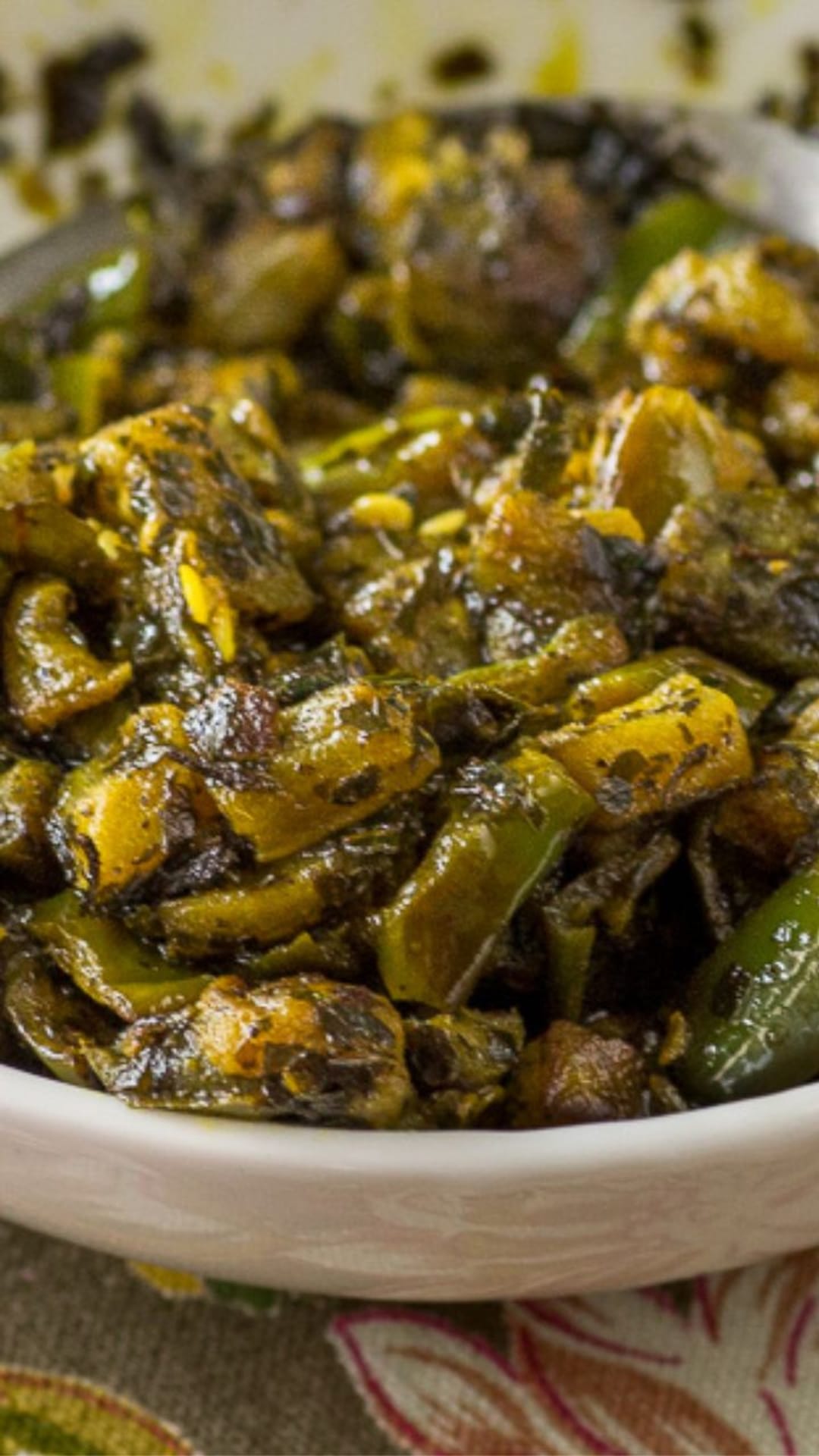নিম পাতা ঝুরঝুরে হয়ে এলে বেগুন ভাজার সঙ্গে নিম পাতা ভাজা মিশিয়ে দিন।