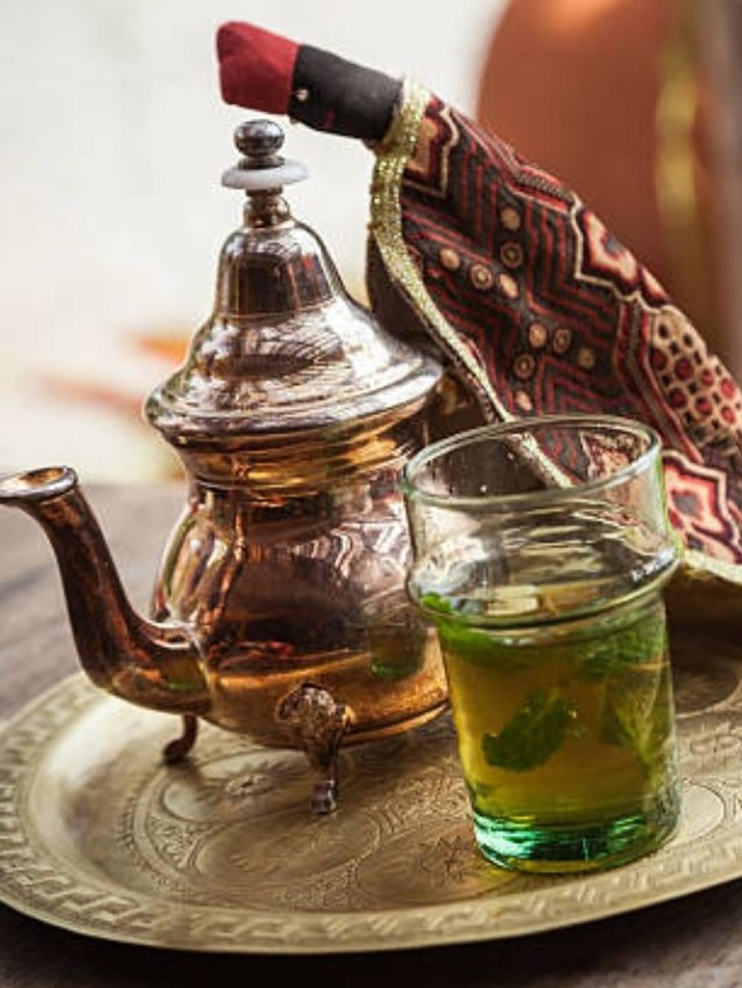 তারপর চা ছেঁকে নিন এবং তাজা পুদিনা পাতা ও মধু মিশিয়ে পরিবেশন করুন মরোক্কান মিন্ট টি