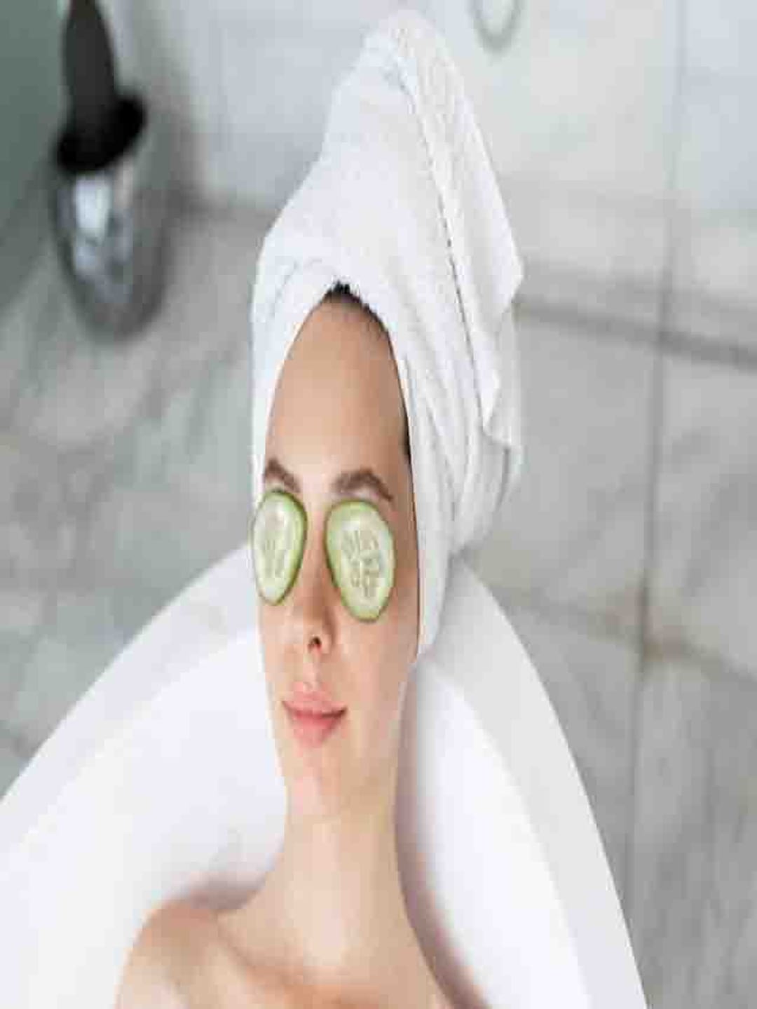 শসার টুকরো দু’টো চোখের পাতায় দিয়ে দিন।
