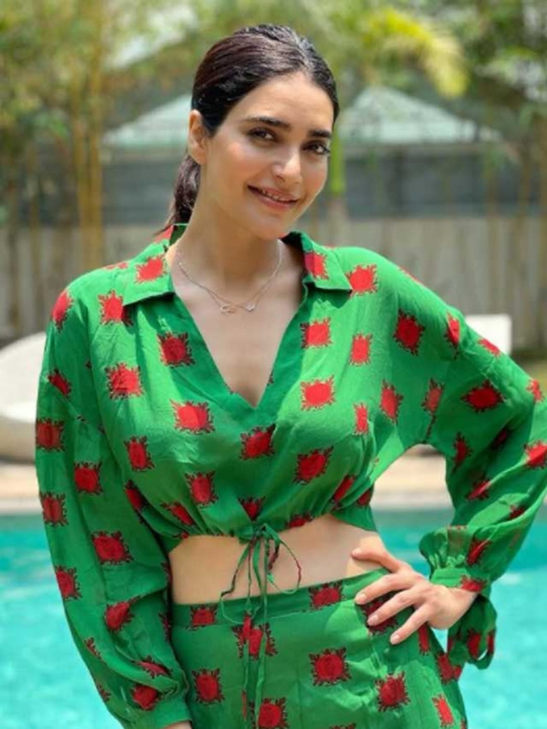 করিশ্মা বেছে নিয়েছেন প্রিন্টেড ফুলহাতা ড্রেস