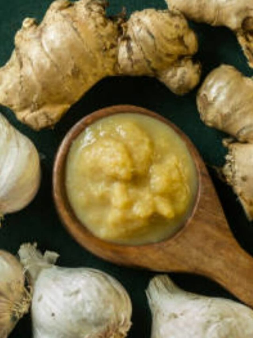 সমপরিমাণ আদা ও রসুন একসঙ্গে ব্লেন্ড করুন। দেড় কাপ আদা ধুয়ে খোসা ছাড়িয়ে ছোট টুকরা করে নিন। দেড় কাপ রসুনের খোসা ছাড়িয়ে কোয়া আলাদা করুন। ব্লেন্ডারে আদা ও রসুন একসঙ্গে দিয়ে দিন।