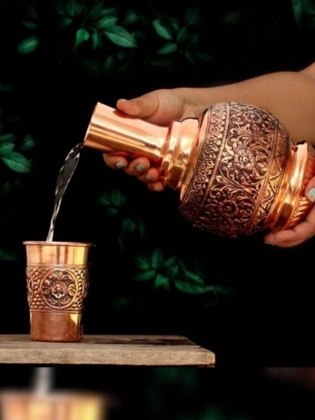 তামার পাত্রে জল খাওয়ার রীতি প্রাচীন যুগ থেকে চলে আসছে। এখনও বাঙালি বাড়িতে পুজোর কাজে ব্যবহার হয় এই তামার জিনিস।