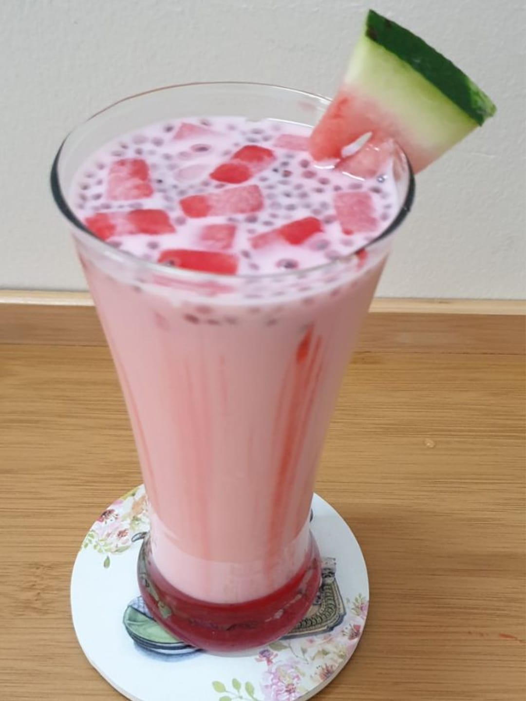 দুধের ওই মিশ্রণে ছোট-ছোট কয়েক টুকরো তরমুজ দিয়ে ভাল করে মিশিয়ে নিন। তার মধ্যে কয়েকটি বরফকুচি দিন।