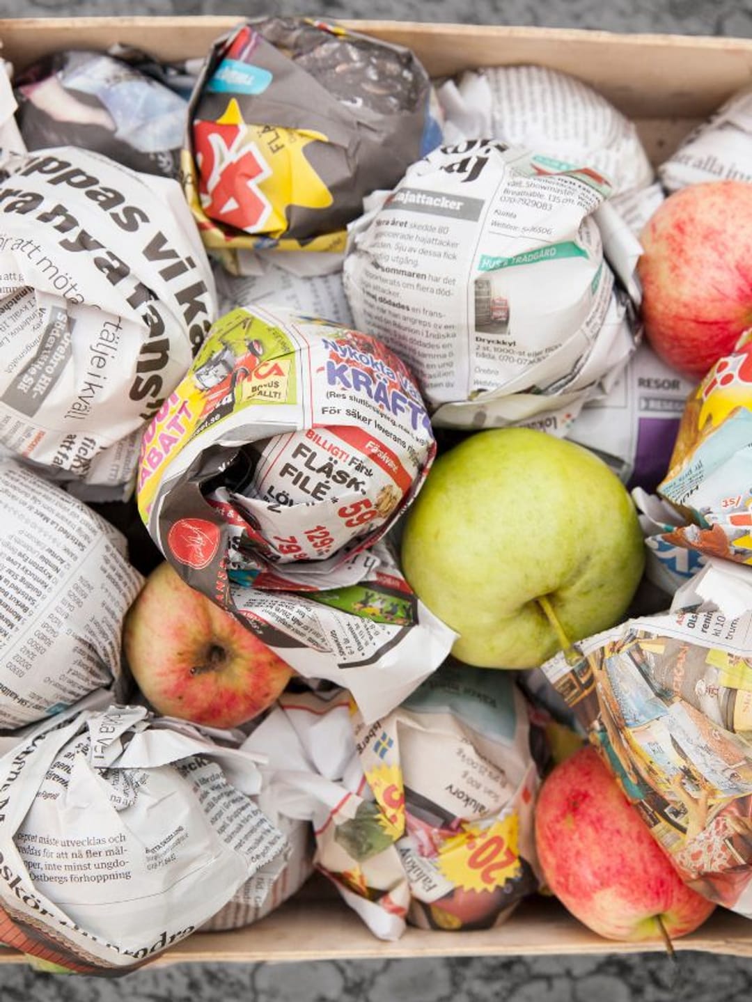 কলা বা আপেলের মতো বেশ কিছু ফলে ইথিলিন গ্যাস থাকে। ফলকে কাগজে মুড়িয়ে রাখলে এতে উপস্থিত ইথিলিন গ্যাস বজায় থাকে।