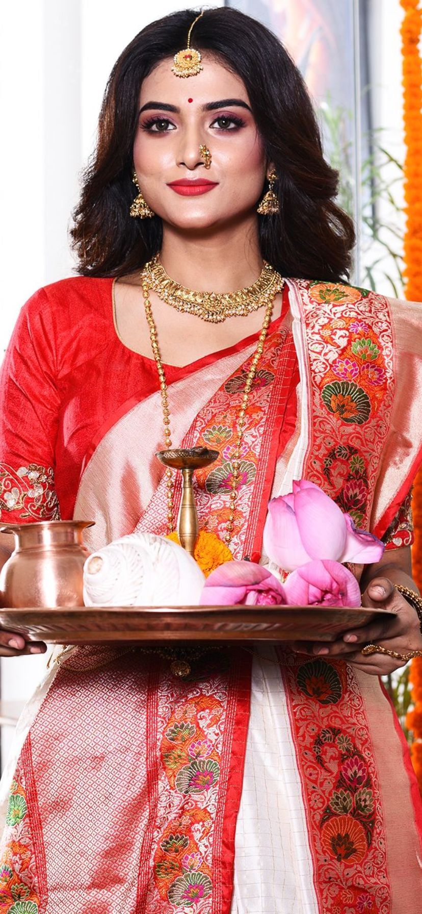 শুধু শাড়ি নয়, তার সঠিক রং, কাপড়, ব্লাউজ আর অ্যাকসেসরিজ মিলিয়ে পরলেই অষ্টমীর সাজ হবে নজরকাড়া।