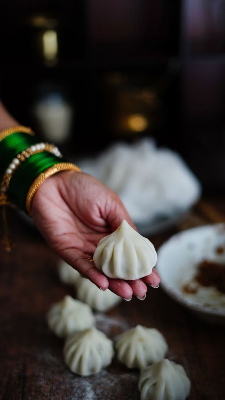 মণ্ড থেকে ছোট বল বানিয়ে হাত দিয়ে পাতলা করে নিন। মাঝখানে পুর দিয়ে উপরে গুটিয়ে শিখর আকৃতি দিন। এ বার একটি স্টিমারে বা ইডলি কুকারে জল গরম করুন।