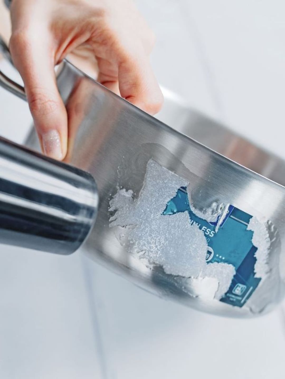 নতুন বাসনে স্টিকার তো থাকবেই। কোম্পানির নাম বা দাম এই ধরনের তথ্য লেখা থাকে মূলত বাসনের উপরের স্টিকারে।