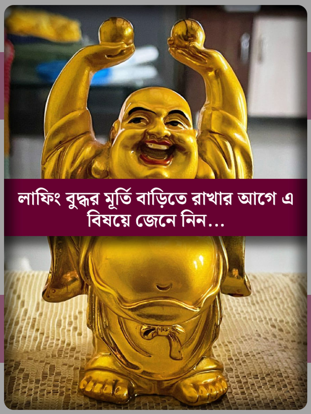 পরিবারের সকলে ও অতিথিরা দেখতে পাবে এমন স্থানে লাফিং বুদ্ধর মূর্তি রাখলে শুভ শক্তি ছড়ায়।