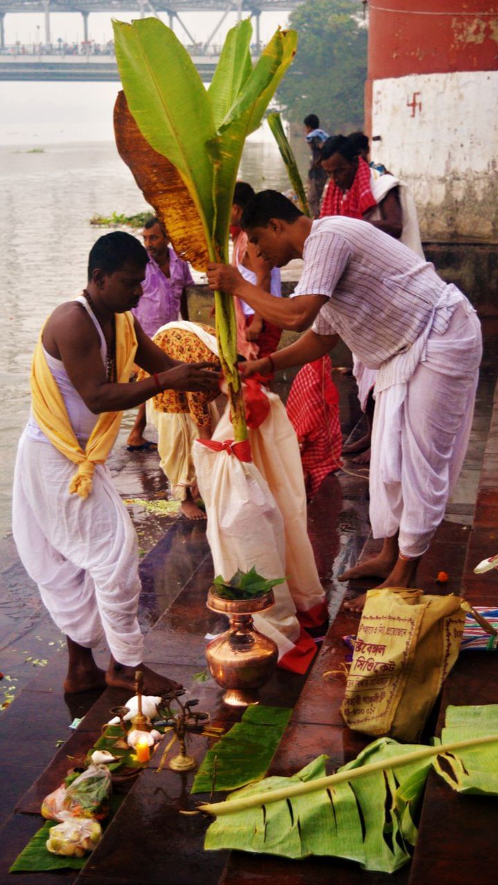 দুর্গাপূজার অন্যতম বিশেষ আচার নবপত্রিকা স্নান। সপ্তমীর সকালে নদীতে কলাগাছকে স্নান করিয়ে প্রতিমার পাশে বসানো হয়। আরও স্পষ্ট করে বললে গণেশের পাশে।