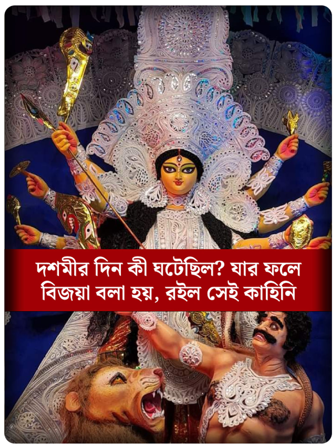 কথিত আছে মহিষাসুরের সঙ্গে ৯দিন, ৯ রাত্রি যুদ্ধ করার পর তাঁর বিরুদ্ধে জয় লাভ করেছিলেন দেবী দুর্গা। তাঁর শক্তির জোরে এই দিনটি বিজয়া দশমী হিসেবে পালিত হয়।