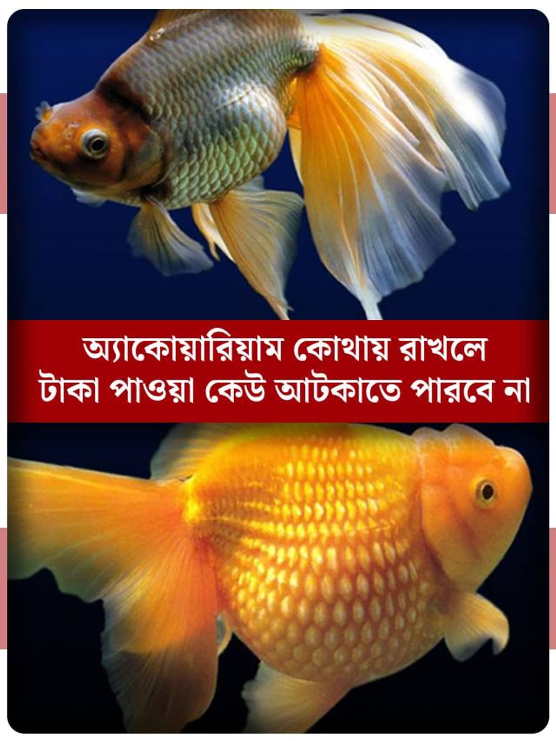 ফেং শুই অনুযায়ী গোল্ড ফিশ বাড়িতে রাখা খুব শুভ। এছাড়া অ্যাঞ্জেল বা আরোয়ানার মতো মাছও রাখা যেতে পারে।