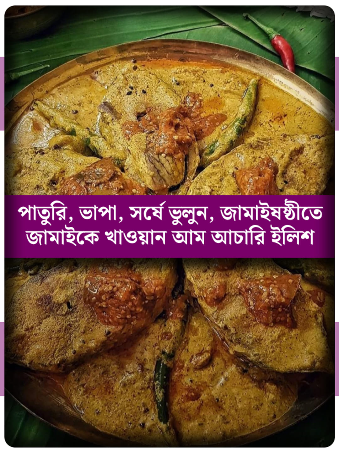 এরপর ওই কষানো মিশ্রণে চেরা কাঁচা লঙ্কা, কিছুটা আচারি আম তেল, ভেজে রাখা ইলিশ মাছের টুকরো ও ২টেবিল চামচ জল দিয়ে একদম কম আঁচে ঢাকা দিয়ে ২মিনিট রান্না করতে হবে।