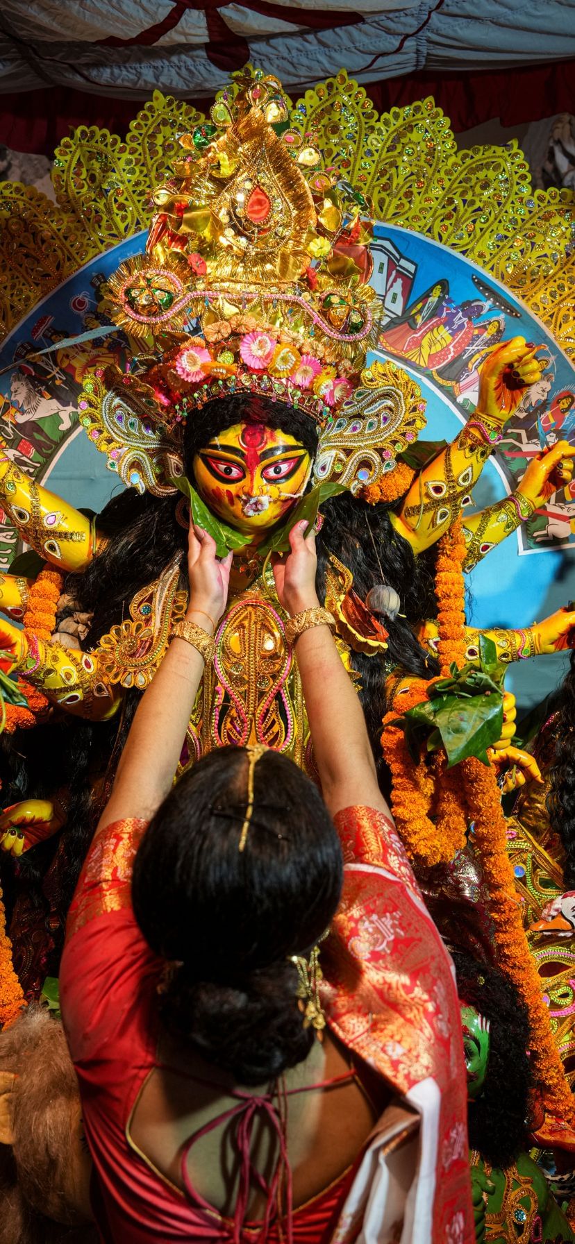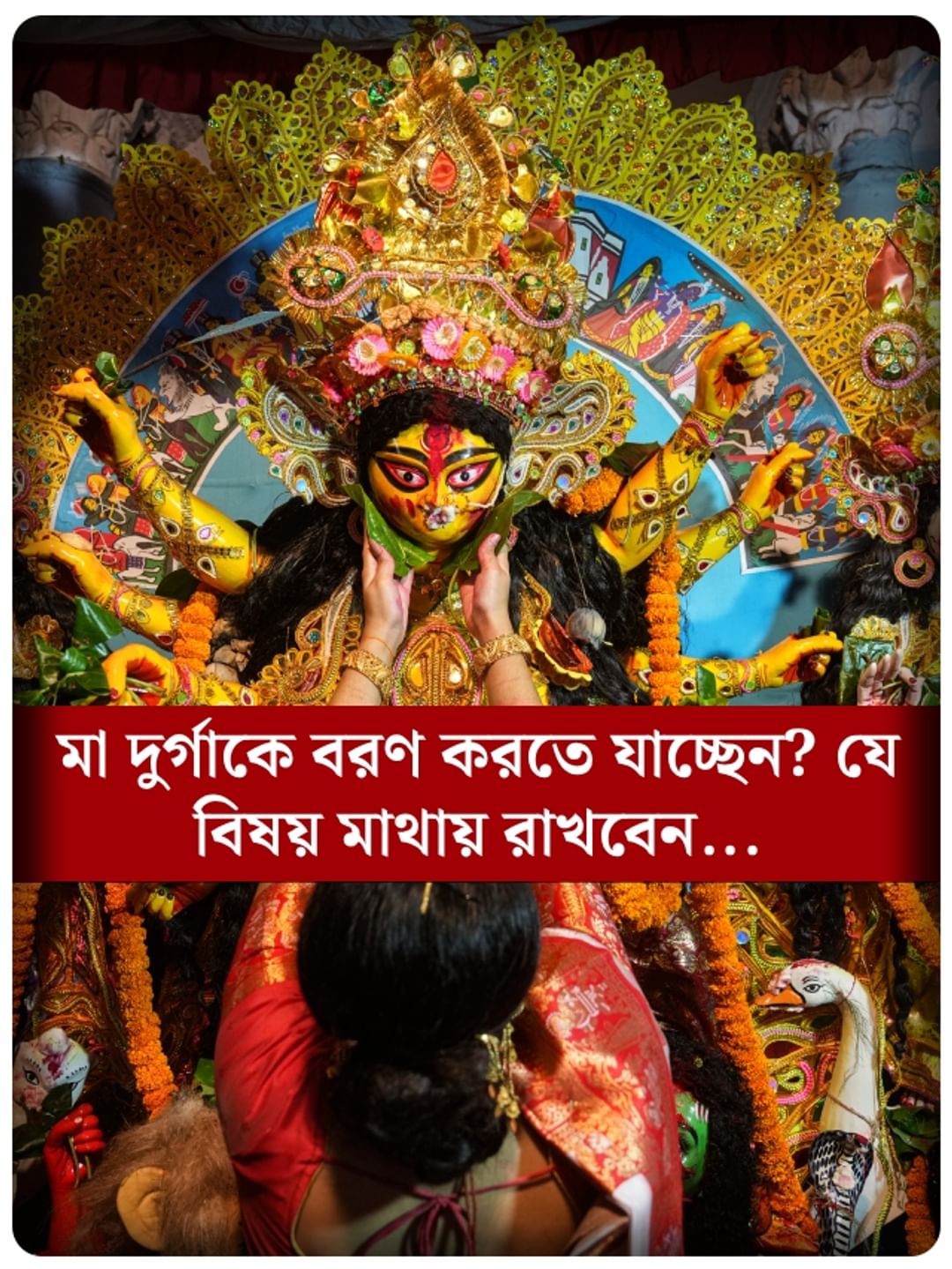 বিজয়া দশমীর দিন দেবী দুর্গাকে বরণ করার সময় প্রথমে দশভূজার সিঁথি ও বাম হাতের শাঁখায় সিঁদুর দিতে হয়।