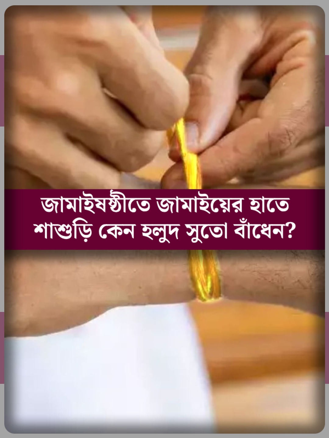 আসলে জামাইষষ্ঠীর দিন জামাইয়ের হাতে হলুদ ও তেলে মাখানো একটি সুতো বেঁধে দিতে হয় শাশুড়িকে। এই রীতি যুগের পর যুগ ধরে চলে আসছে।
