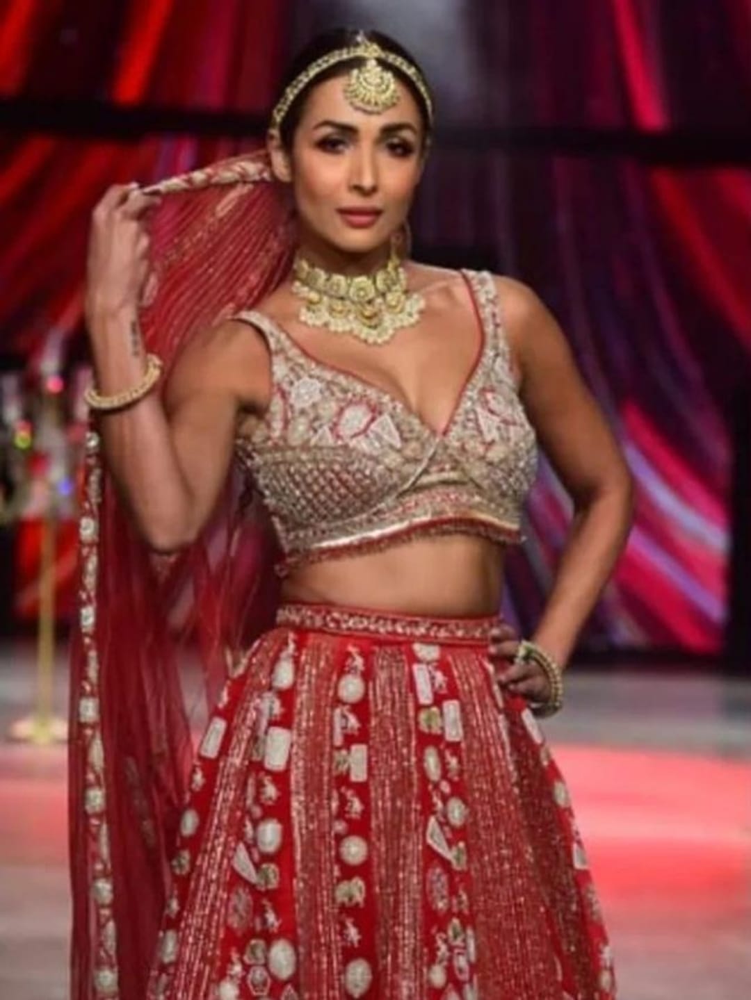 রূপোর কাজ করা অসাধারণ সুন্দর লাল লেহেঙ্গায় দর্শকের মন জিতে নিয়েছেন ছাইয়াঁ-গার্ল।
