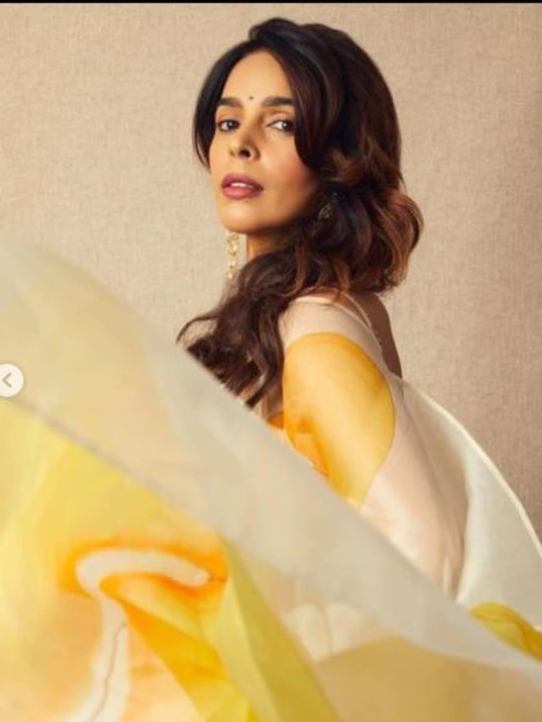 সুন্দর ফ্লোরাল প্রিন্ট অর্গ্যানজা শাড়িতে বোল্ড মল্লিকা শেরওয়াত।