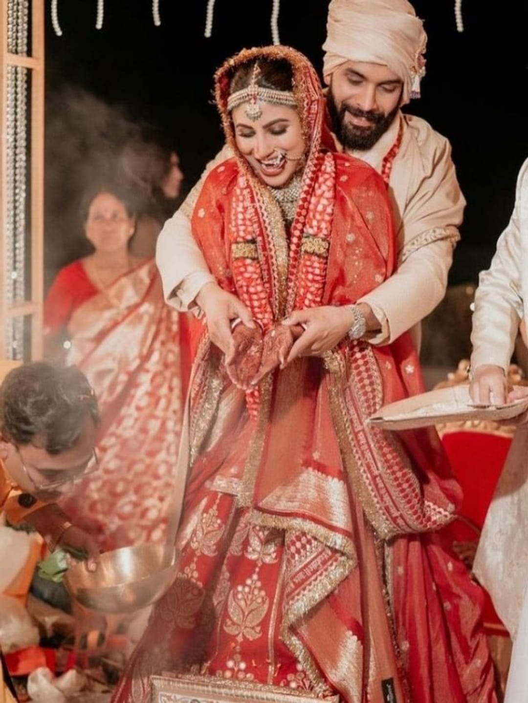 বিয়েতে সব্যসাচীর লেহেঙ্গা পরেছিলেন মৌনী