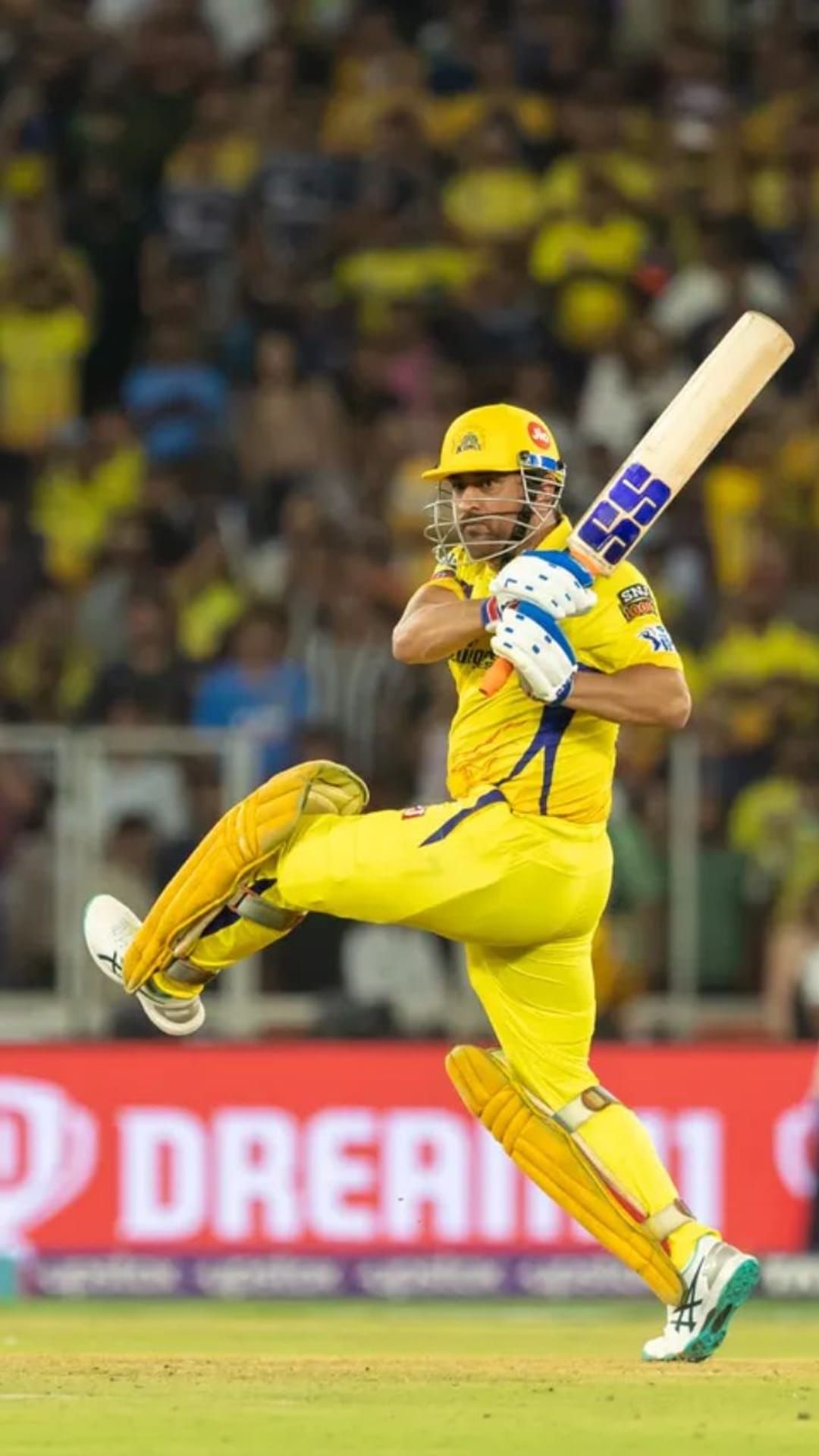 সিএসকের ইনিংসের শেষ ওভারে একটি ছক্কা হাঁকান ধোনি।