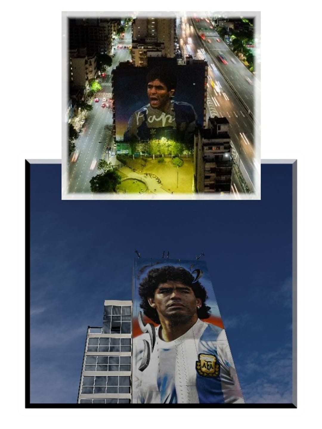 ৩৫ মিটার দীর্ঘ এই দেওয়ালচিত্রে মারাদোনার মেয়েরা তুলির টান দেন, এবং লেখেন "হ্যালো, ড্যাডি"