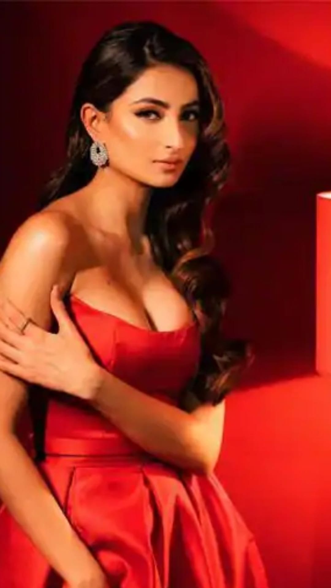 এবার তাঁর পরনে লাল রঙের উজ্জ্বল গাউন