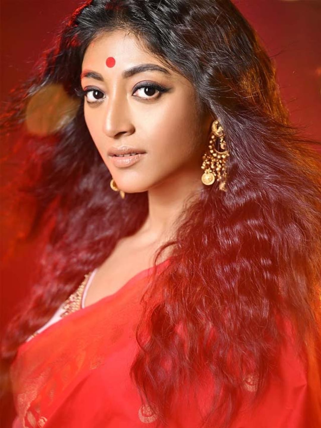 কখনও লাল শাড়িতে তিনি নিজেকে সাজিয়েছেন।