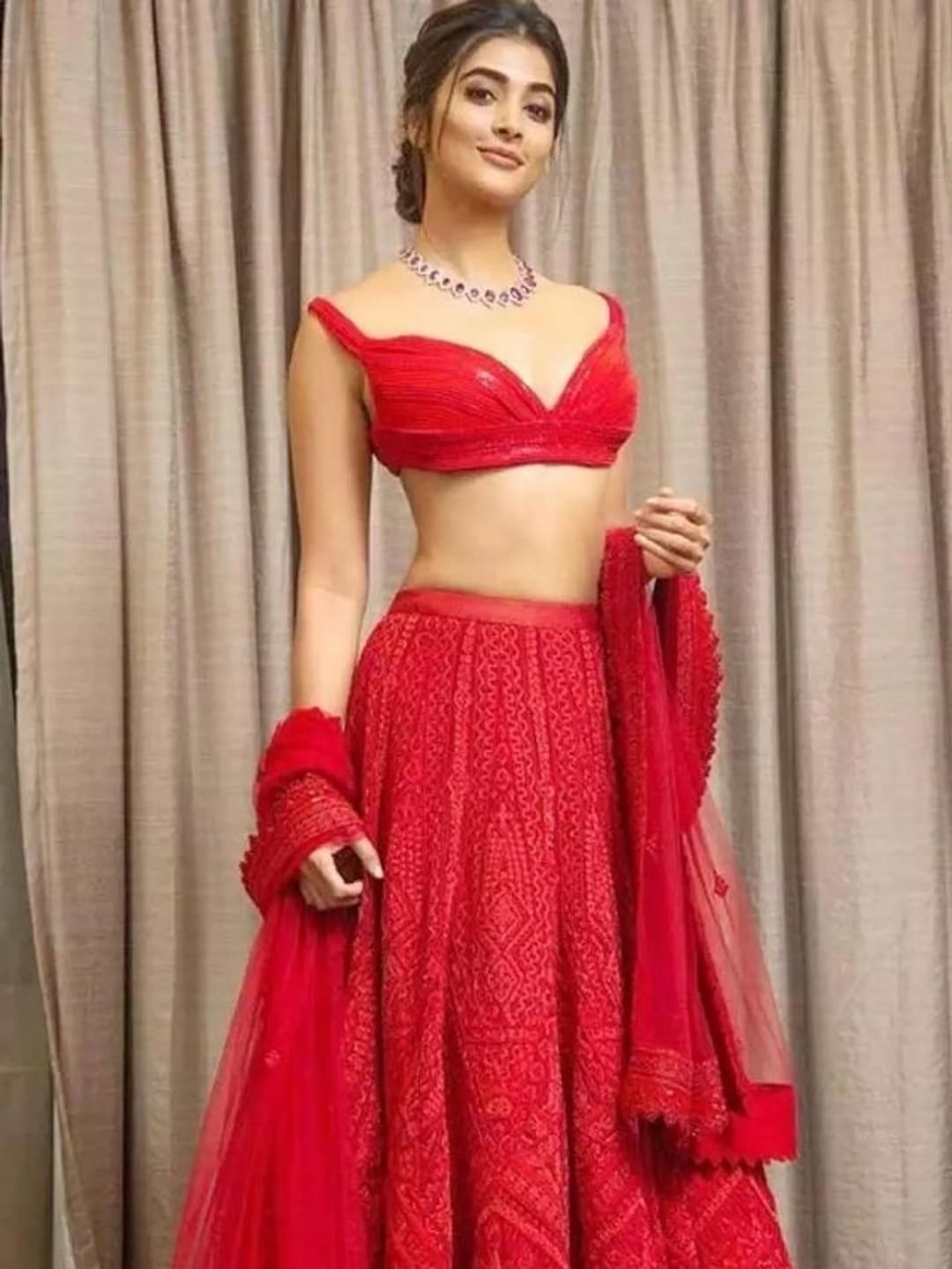 লাল বেনারসি ফেব্রিকের লেহেঙ্গায় সুন্দরী দক্ষিণী তারকা।
