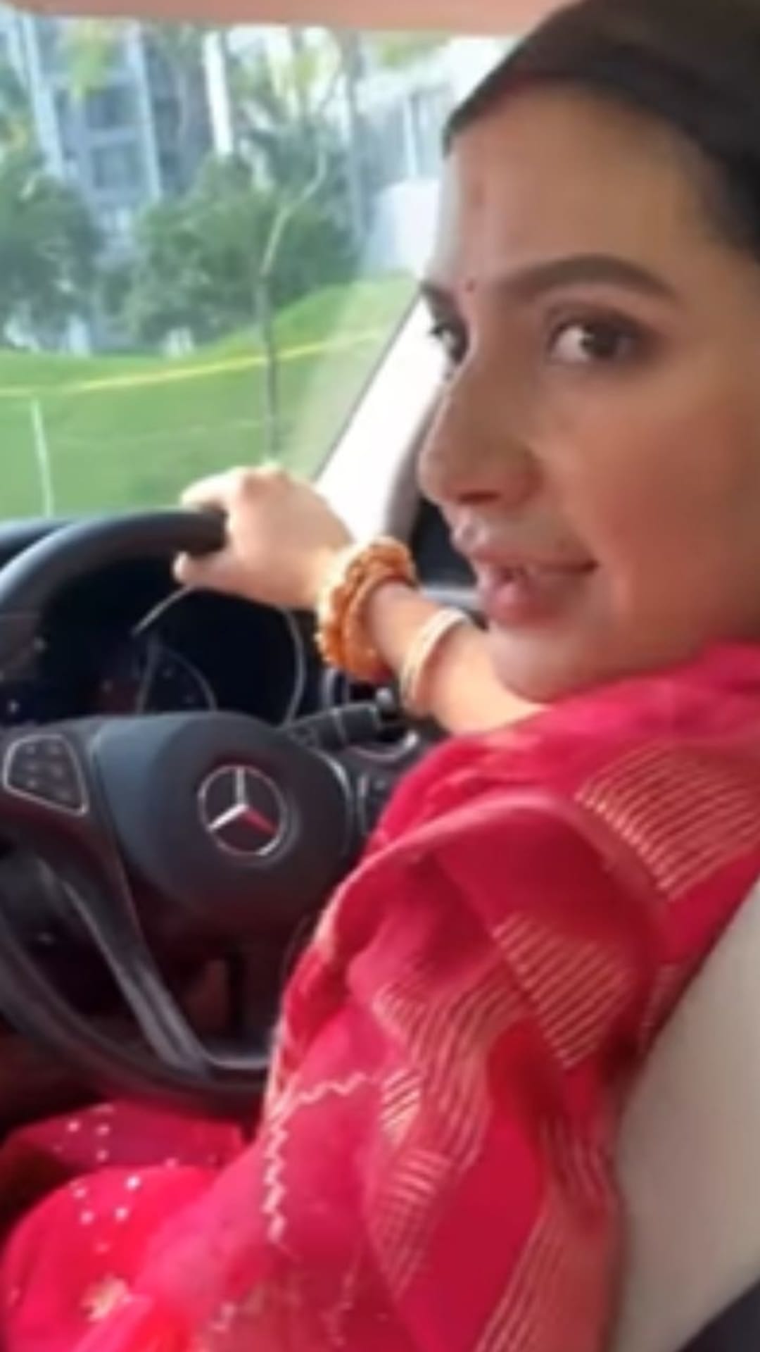 শাশুড়িকে পাশে বসিয়ে আটপৌরে সাজে গাড়ি চালাচ্ছেন নায়িকা