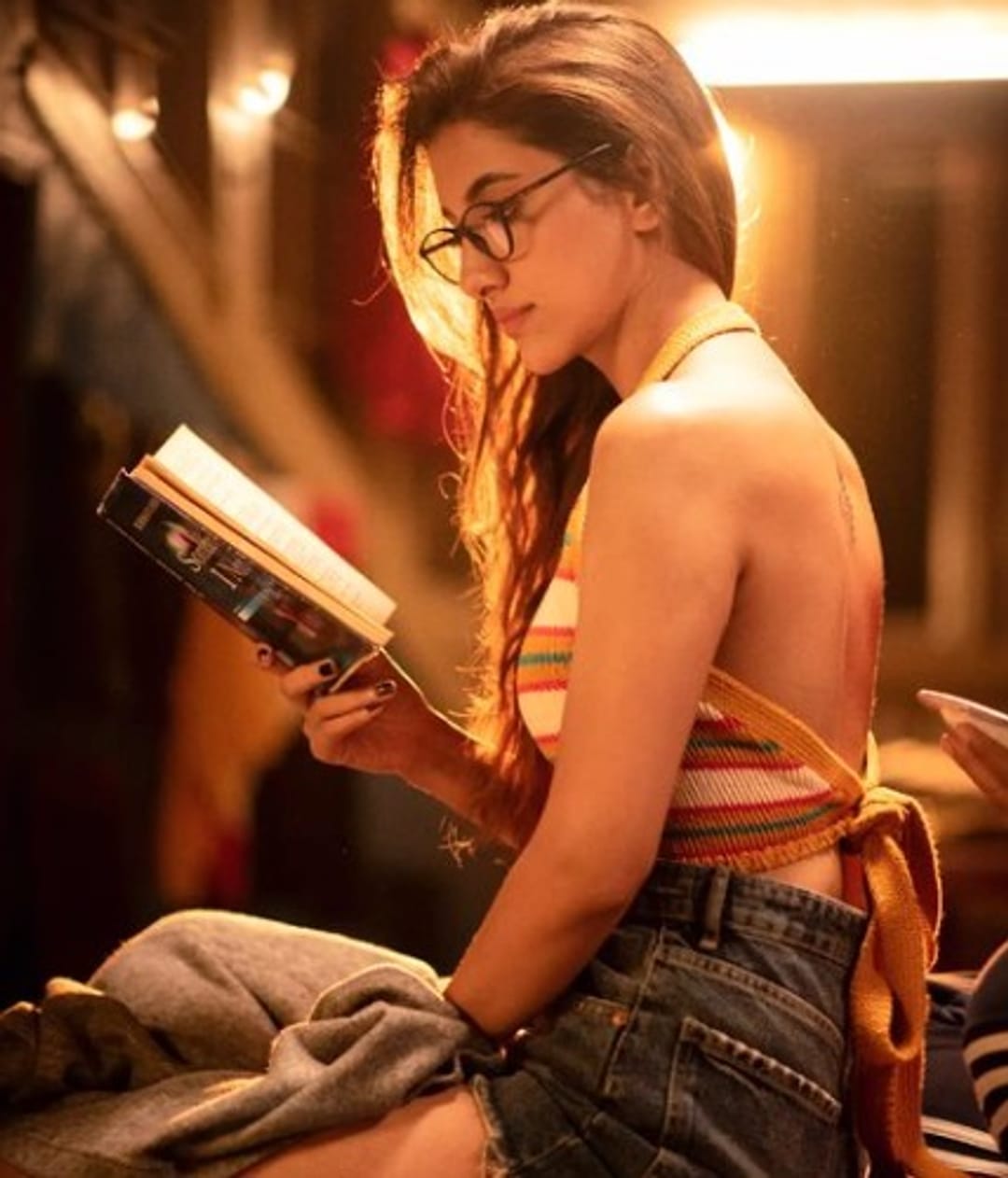 সিজ়লিং ব্যাকলেস টপ পরে বইয়ে মন দিয়েছেন রুক্মিণী...